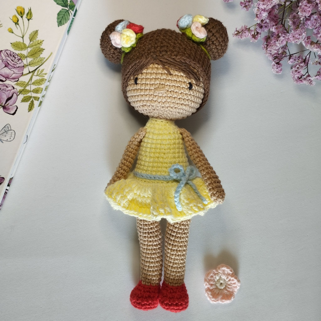 A Boneca Laurinha é muito mais do que um brinquedo – é uma companheira de aventuras, feita à mão em croché com todo o cuidado e carinho.